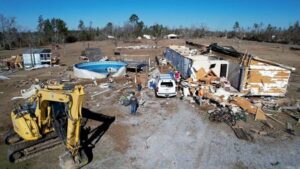 General view of Daryle and Shawna Littleton’s property destroyed by a tornado in Prattville, Alabama, U.S., January 14, 2023. REUTERS/Evan Garcia
