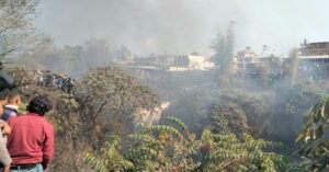 Crowd gather at the crash site of an aircraft carrying 72 people in Pokhara in western Nepal January 15, 2023. Sagar Raj Timilsina/Handout via REUTERS