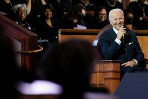 U.S. President Joe Biden sits at Ebenezer Baptist Church ahead of the holiday honoring Martin Luther King Jr., in Atlanta, Georgia, U.S., January 15, 2023. REUTERS/Joshua Roberts
