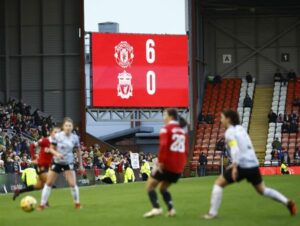 Soccer Football – Women’s Super League – Manchester United v Liverpool – Leigh Sports Village, Leigh, Britain – January 15, 2023 General view of the scoreboard during the match Action Images via Reuters/Andrew Boyers