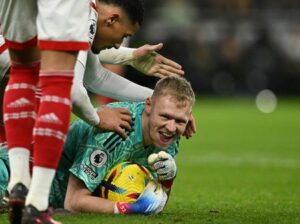 Soccer Football – Premier League – Tottenham Hotspur v Arsenal – Tottenham Hotspur Stadium, London, Britain – January 15, 2023 Arsenal’s Aaron Ramsdale reacts REUTERS/Dylan Martinez