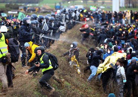 LUTZERATH (Reuters) – Around 6,000 protesters – including climate activist Greta Thunberg – marched through mud and rain to the German village of Luetzerath on Saturday, according to a police estimate, demonstrating against the expansion of an opencast lignite mine.