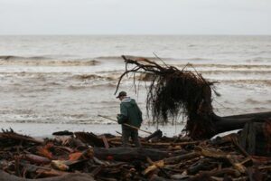 Storms hit California January 15, 2023 January 15, 2023 A man scours the driftwood in Capitola, California, U.S., January 15, 2023. REUTERS/David Swanson