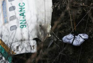 Un equipo de rescate recupera el cuerpo de una víctima del lugar donde se estrelló un avión operado por Yeti Airlines, en Pokhara, Nepal, el 16 de enero de 2023. REUTERS/Rohit Giri