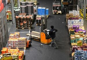 A worker is seen at the wholesale fruits and vegetables market in Hamburg Germany March 13, 2018. REUTERS/Fabian Bimmer/Files