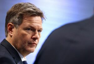 FILE PHOTO: German Economy Minister Robert Habeck looks on during a joint statement in Berlin, Germany, November 29, 2022. REUTERS/Christian Mang/File Photo