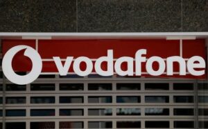The logo of Vodafone is seen on the facade of January 17, 2023 January 17, 2023 The logo of Vodafone is seen on the facade of a store in Ronda, Spain, October 3, 2022. REUTERS/Jon Nazca