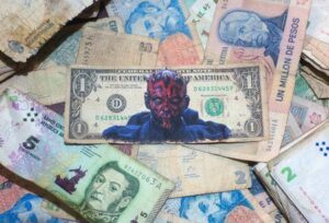 Foto de archivo – Un billete de un dólar estadounidense intervenido por artísticamente se muestra sobre viejos y devaluados pesos argentinos, en Salta, Argentina. Dic 30, 2022. REUTERS/Javier Corbalan
