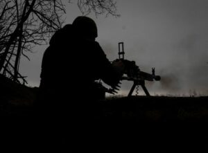 A Ukrainian service member fires a machine gun at a position on the front line, amid Russia’s attack on Ukraine, near the town of Soledar in Donetsk region, Ukraine January 14, 2023. Radio Free Europe/Radio Liberty/Serhii Nuzhnenko via REUTERS
