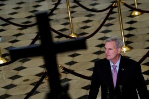 FILE PHOTO: U.S. Speaker of the House Kevin McCarthy (R-CA) speaks to reporters at the U.S. Capitol in Washington, U.S., January 12, 2023. REUTERS/Elizabeth Frantz/File Photo