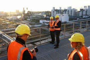 FILE PHOTO: German Chancellor Olaf Scholz stands next to Chairman of the Board of Executive Directors of BASF SE Martin Brudermueller during a visit to BASF chemical industry company in Schwarzheide, Germany, November 1, 2022. REUTERS/Lisi Niesner/Pool