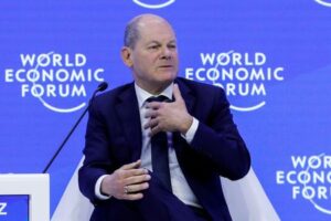 German Chancellor Olaf Scholz speaks during the World Economic Forum (WEF), in Davos, Switzerland, January 18, 2023. REUTERS/Arnd Wiegmann