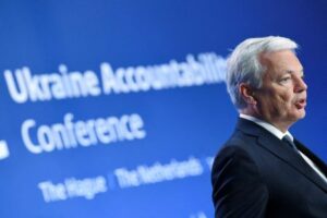 FILE PHOTO: EU Commissioner for Justice, Didier Reynders speaks at a press conference, at the Ukraine Accountability Conference in The Hague, Netherlands, July 14, 2022. REUTERS/Piroschka van de Wouw
