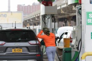 A person uses a petrol pump at a gas station as fuel prices surged in Manhattan, New York City, U.S., March 7, 2022. REUTERS/Andrew Kelly