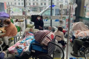 FILE PHOTO: Patients lie on beds in the emergency department of a hospital, amid the coronavirus disease (COVID-19) outbreak in Shanghai, China, January 5, 2023. REUTERS/Staff