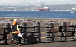 Imagen de archivo de un trabajador portuario revisando un cargamento de cobre que será exportado a Asia, en el puerto de Valparaíso, al noroeste de Santiago, Chile. 25 de enero, 2015. REUTERS/Rodrigo Garrido/Archivo