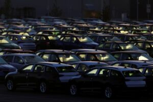 FILE PHOTO-Cars are parked in the courtyard of Skoda Auto’s factory as the company restarts production after shutting down last month due to the coronavirus disease (COVID-19) outbreak in Mlada Boleslav, Czech Republic, April 27, 2020. REUTERS/David W Cerny