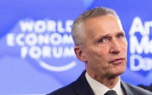 El secretario general de la OTAN, Jens Stoltenberg, asiste a una entrevista televisiva en una sala del Centro de Congresos de Davos, sede del Foro Económico Mundial (FEM) 2023, en centro turístico alpino de Davos, Suiza.18 de enero, 2023. REUTERS/Arnd Wiegmann