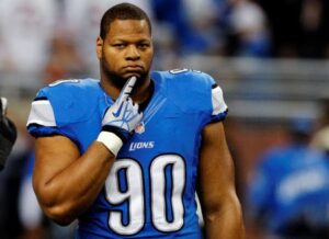FILE PHOTO: Detroit Lions defensive tackle Ndamukong Suh stands on the field during warms-ups of their NFL football game against the Chicago Bears in Detroit, Michigan December 30, 2012. REUTERS/Rebecca Cook
