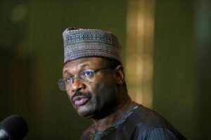 Mahmood Yakubu, Chairman of the Independent National Electoral Commission (INEC) addresses the media after the postponement of Nigeria’s presidential election in Abuja, Nigeria February 20, 2019 REUTERS/Afolabi Sotunde/File Photo