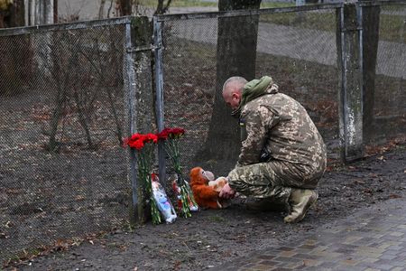 KYIV (Reuters) – The Ukrainian state emergency services on Wednesday revised down the death toll in a helicopter crash in the town of Brovary outside Kyiv to 14 people, including one child.