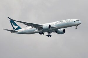 FILE PHOTO: A Cathay Pacific Airways Airbus A350-900 airplane approaches to land at Changi International Airport in Singapore June 10, 2018. REUTERS/Tim Chong/File Photo