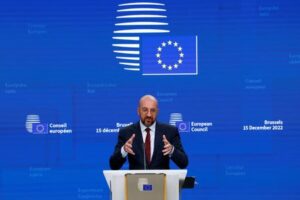 FOTO DE ARCHIVO: El presidente del Consejo Europeo, Charles Michel, asiste a una rueda de prensa en una cumbre de líderes de la Unión Europea en Bruselas, Bélgica, 15 de diciembre de 2022. REUTERS/Yves Herman
