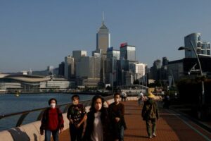FILE PHOTO: People wearing face masks walk on the street during the coronavirus disease (COVID-19) pandemic in Hong Kong, China, December 28, 2022. REUTERS/Tyrone Siu