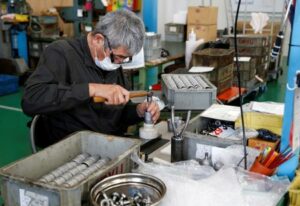 FILE PHOTO: A worker assembles an air drill at the factory of manufacturer Katsui Kogyo in Higashiosaka, Japan June 23, 2022. REUTERS/Sakura Murakami/File Photo