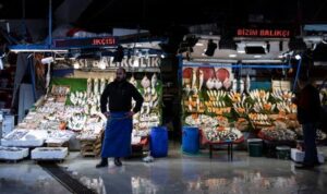 A fish market owner waits for customers in Istanbul January 19, 2023 January 19, 2023 A fish market owner waits for customers in Istanbul, Turkey, January 19, 2023. REUTERS/Umit Bektas