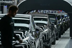 Model Y cars are pictured during the opening ceremony of the new Tesla Gigafactory for electric cars in Gruenheide, Germany, March 22, 2022. Patrick Pleul/Pool via REUTERS