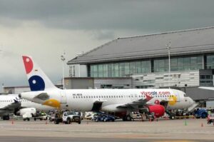 Foto de archivo. Un avión Airbus A320-200 de la aerolínea colombiana Viva Air es visto en el aeropuerto El Dorado en Bogotá, Colombia, 8 de mayo, 2019. REUTERS/Luisa González