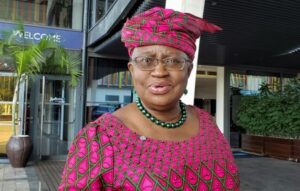 FILE PHOTO: World Trade Organization Director-General Ngozi Okonjo-Iweala walks at the Commonwealth Heads of Government Meeting (CHOGM) in Kigali, Rwanda, June 24, 2022. REUTERS/Clement Uwiringiyimana