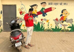 FILE PHOTO: Ravi Verma, 27, an unemployed man who lost his job in November last year, makes queries for a new job on his mobile phone outside a community centre in Faridabad on the outskirts of New Delhi, India, January 13, 2023. REUTERS/Manoj Kumar