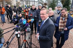 Bundesverteidigungsminister Boris Pistorius spricht zu den Medien auf der Air