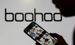 FILE PHOTO: A woman poses with a smartphone showing the Boohoo app in front of the Boohoo logo on display in this illustration taken September 30, 2020. REUTERS/Dado Ruvic/Illustration/File Photo
