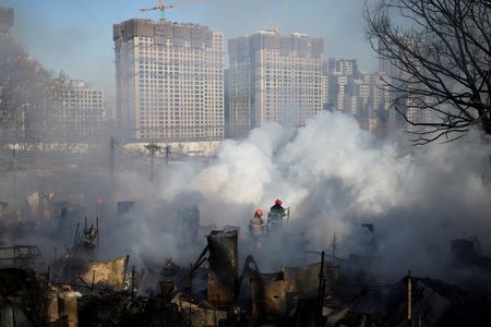 (Reuters) – A blaze swept through one of the last remaining shanty towns in the South Korean capital of Seoul on Friday, destroying 60 homes and forcing authorities to evacuate about 500 people.