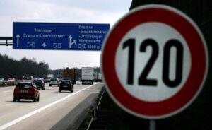 FILE PHOTO: Cars pass a 120 km/h (75 mph) speed limit sign on the A27 Autobahn near the northern German city of Bremen April 10, 2008. REUTERS/Morris Mac Matzen