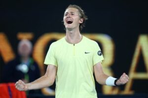 Foto del viernes de Sebastian Korda celebrando tras vencer a Daniil Medvedev en el Abierto de Australia