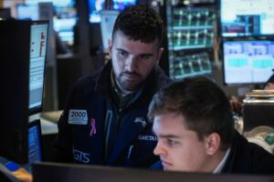 Specialist traders work inside a post on the floor of the New York Stock Exchange (NYSE) in New York City, U.S., November 9, 2022. REUTERS/Brendan McDermid