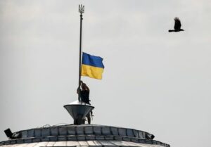 ARCHIV: Die ukrainische Nationalflagge auf einem Dach in Kiew January 20, 2023 January 20, 2023 ARCHIV: Die ukrainische Nationalflagge auf einem Dach in Kiew, Ukraine, 23. August 2016. REUTERS/Gleb Garanich