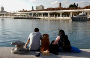 FILE PHOTO: People with their dogs enjoy the sun in front of the sea during unseasonably warm temperatures in Malaga, southern Spain, January 4, 2023. REUTERS/Jon Nazca