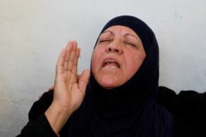 Mother of a Palestinian man, who was killed by Israeli forces after an attempted stabbing, reacts, near Ramallah, in the Israeli-occupied West Bank, January 21, 2023. REUTERS/Ammar Awad
