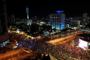 Israelis protest against Prime Minister Benjamin Netanyahu’s new right-wing coalition and its proposed judicial reforms to reduce powers of the Supreme Court, in Tel Aviv, Israel January 21, 2023. REUTERS/Ilan Rosenberg