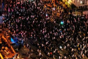 Israelis protest against Prime Minister Benjamin Netanyahu’s new right-wing coalition and its proposed judicial reforms to reduce powers of the Supreme Court, in Tel Aviv, Israel January 21, 2023. REUTERS/Ilan Rosenberg