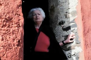 U.S. Treasury Secretary Janet Yellen stands at the ‘Door of No Return’ as she visits the House of Slaves (Maison des Esclaves) at Goree Island off the coast of Dakar, Senegal January 21, 2023. REUTERS/Ngouda Dione