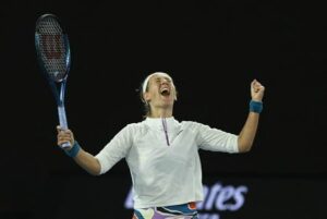 Tennis – Australian Open – Melbourne Park, Melbourne, Australia – January 23, 2023 Belarus’ Victoria Azarenka celebrates winning her fourth round match against China’s Lin Zhu REUTERS/Jaimi Joy