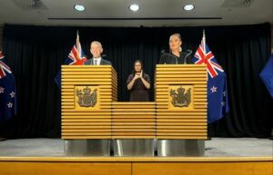 Chris Hipkins and Carmel Sepuloni attend a news conference after being confirmed as the new Prime Minister and Deputy Prime Minister in Wellington New Zealand, January 22, 2023. REUTERS/Lucy Craymer