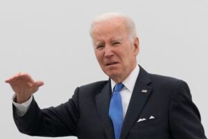 U.S. President Joe Biden gestures as he boards Air Force One for return travel to Washington, at Dover Air Force Base in Dover, Delaware, U.S., January 23, 2023. REUTERS/Ken Cedeno