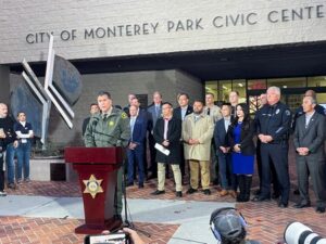 Los Angeles County Sheriff Robert Luna speaks at a news conference in the aftermath of a shooting that took place during a Chinese Lunar New Year celebration, in Monterey Park, California, U.S. January 22, 2023. REUTERS/Alan Devall